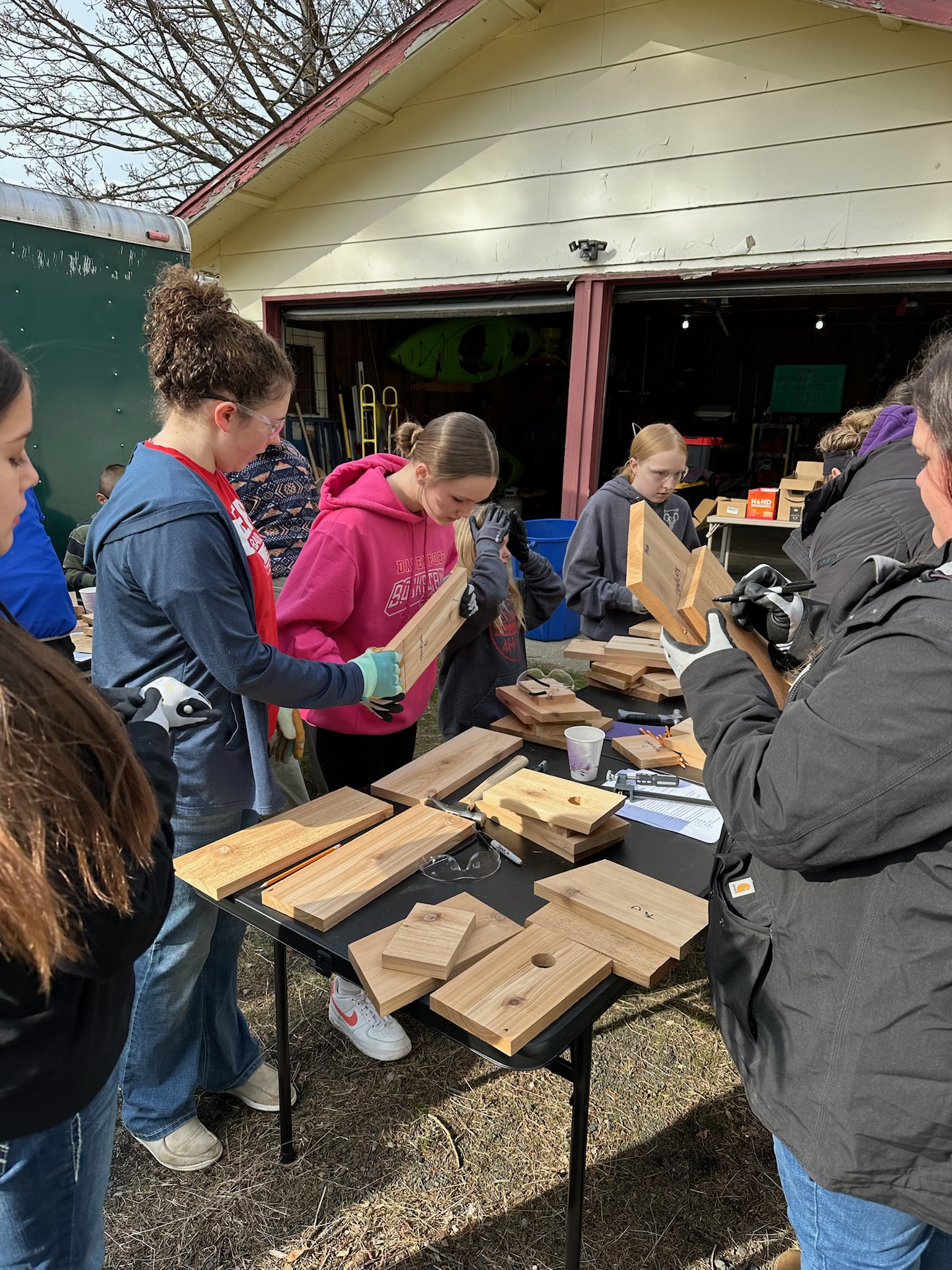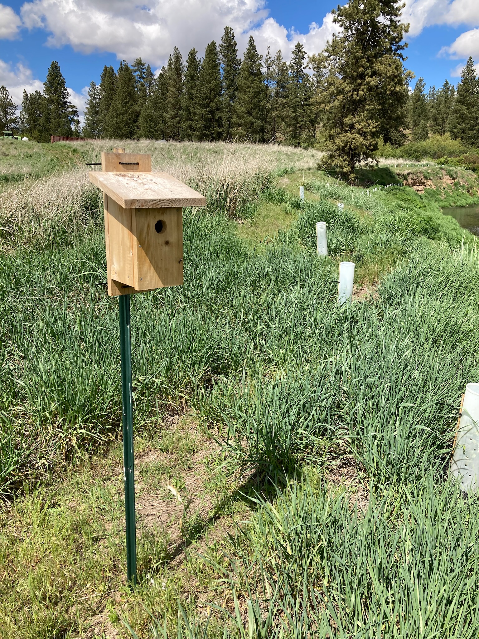 Our local 4H chapter built bird boxes that provide nesting habitat on our restoration sites. Birds are critical to the native ecosystem by controlling insect populations, adding diversity, and making the outdoors more enjoyable. Unfortunately, habitat loss and competition from invasive species has caused native populations to decline, so bird boxes are a simple way to provide this critical missing component.